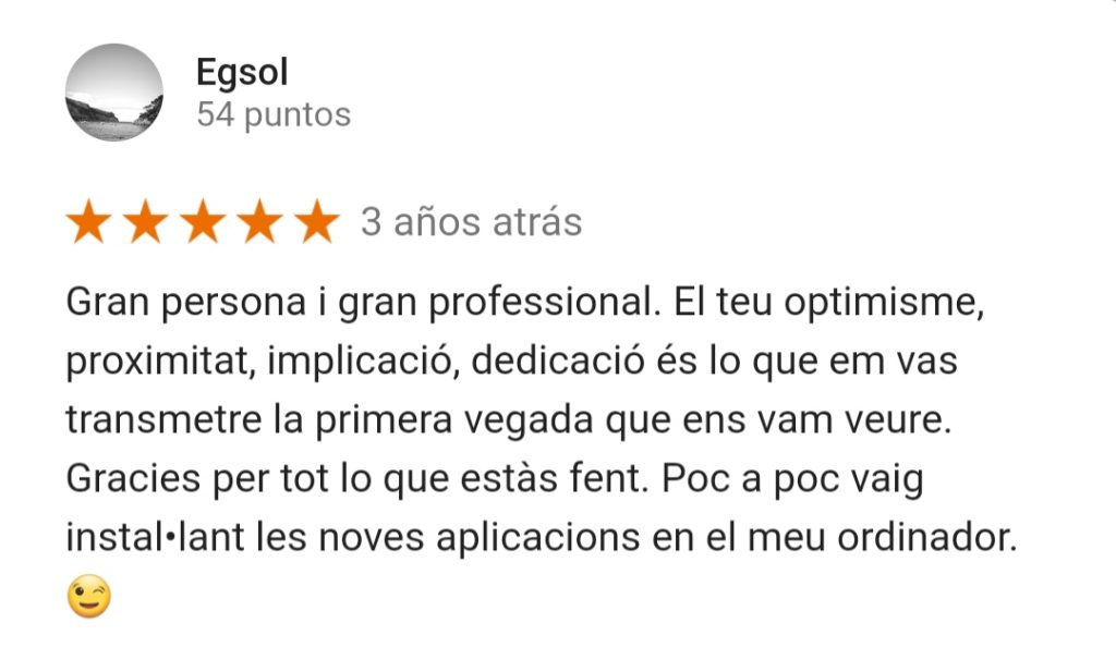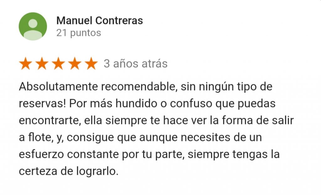 Aquí puedes ver algunas de las reseñas que mis clientes han dejado en Google sobre mi trabajo. Son valoraciones sinceras y espontáneas que reflejan su satisfacción y agradecimiento por mi ayuda.